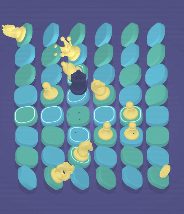 You start with one single piece. Across the board, there are a few chess pieces strategically placed. When you take a chess piece, you become that piece and inherit its abilities. The level is complete when you collect the coin.